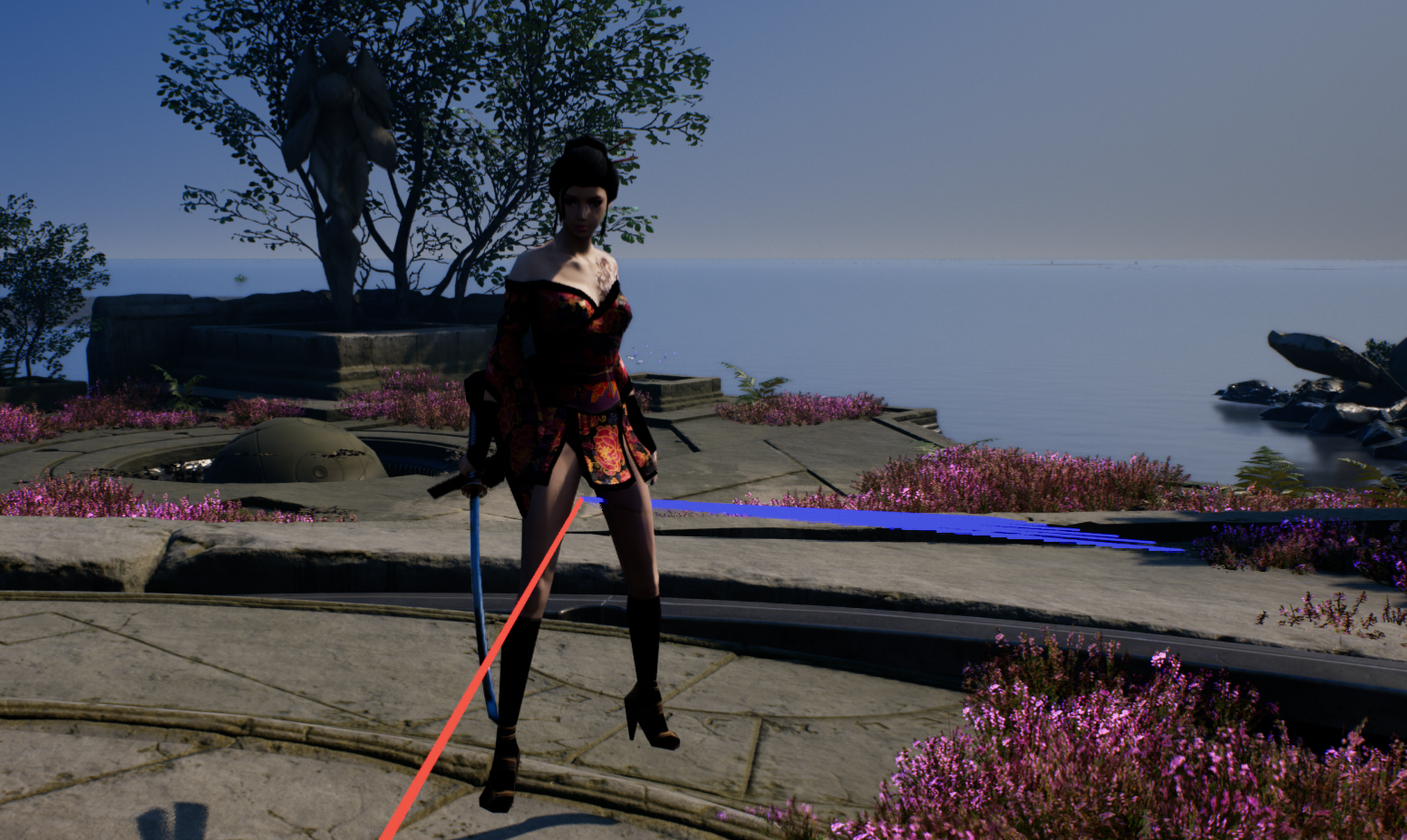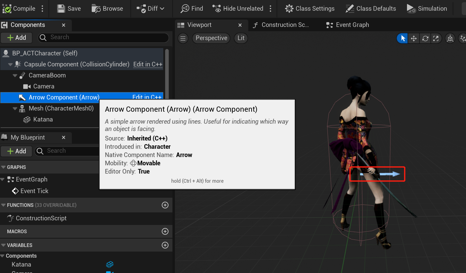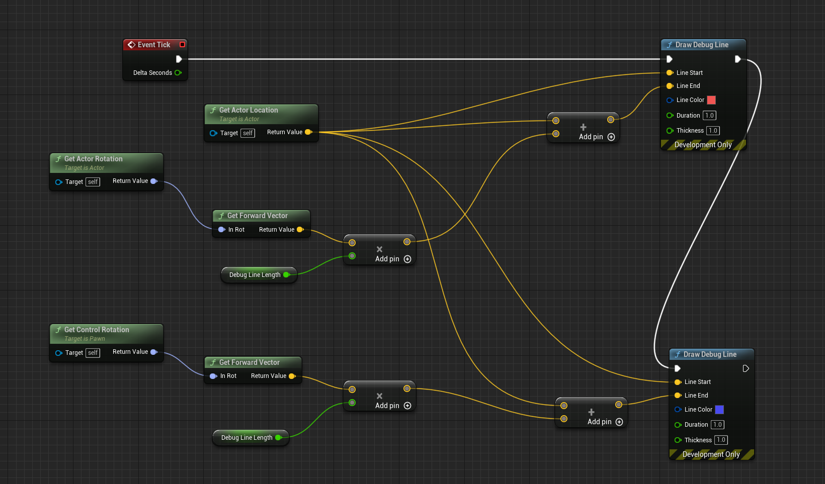 锁定模式下的人物朝向相机运动逻辑也容易理解,ControlRotation不再接受输入,ControlRotation与ActorRotation都固定为人物与锁定目标的连线.