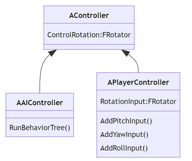 AIController提供行为树管理AI控制的Pawn,PlayerController则接受输入控制玩家角色Pawn.